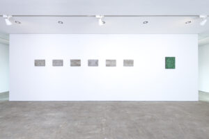 Callegari establishes a daily commitment to investigating facture and recognizes painting as an active agent. In building layers of linen, ground, and paint, he also acknowledges the time of the gesture and the care devoted to each glaze—an elastic and elusive temporality set against urban time, even as it is nourished by it. The angle is horizontalized into a field of color, with a detail that folds and reveals a curve.